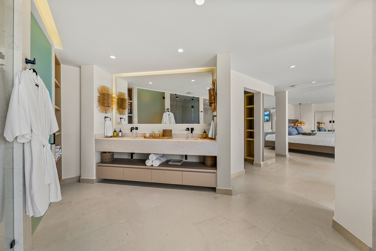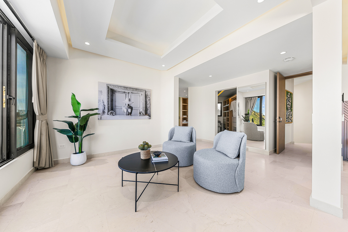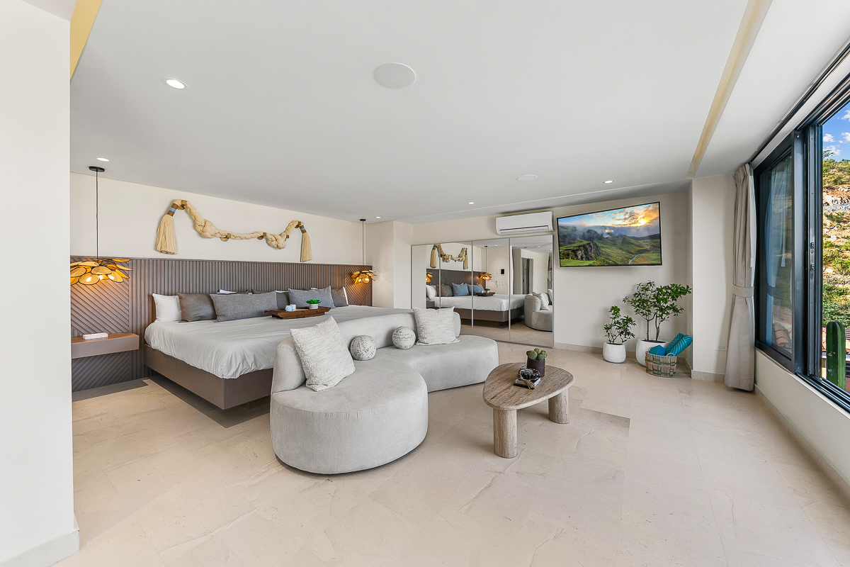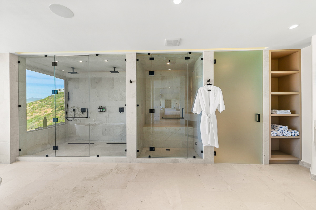 Alaska King bed, steam room, soaking tub, dual shower, TV, sitting area and walk in closet