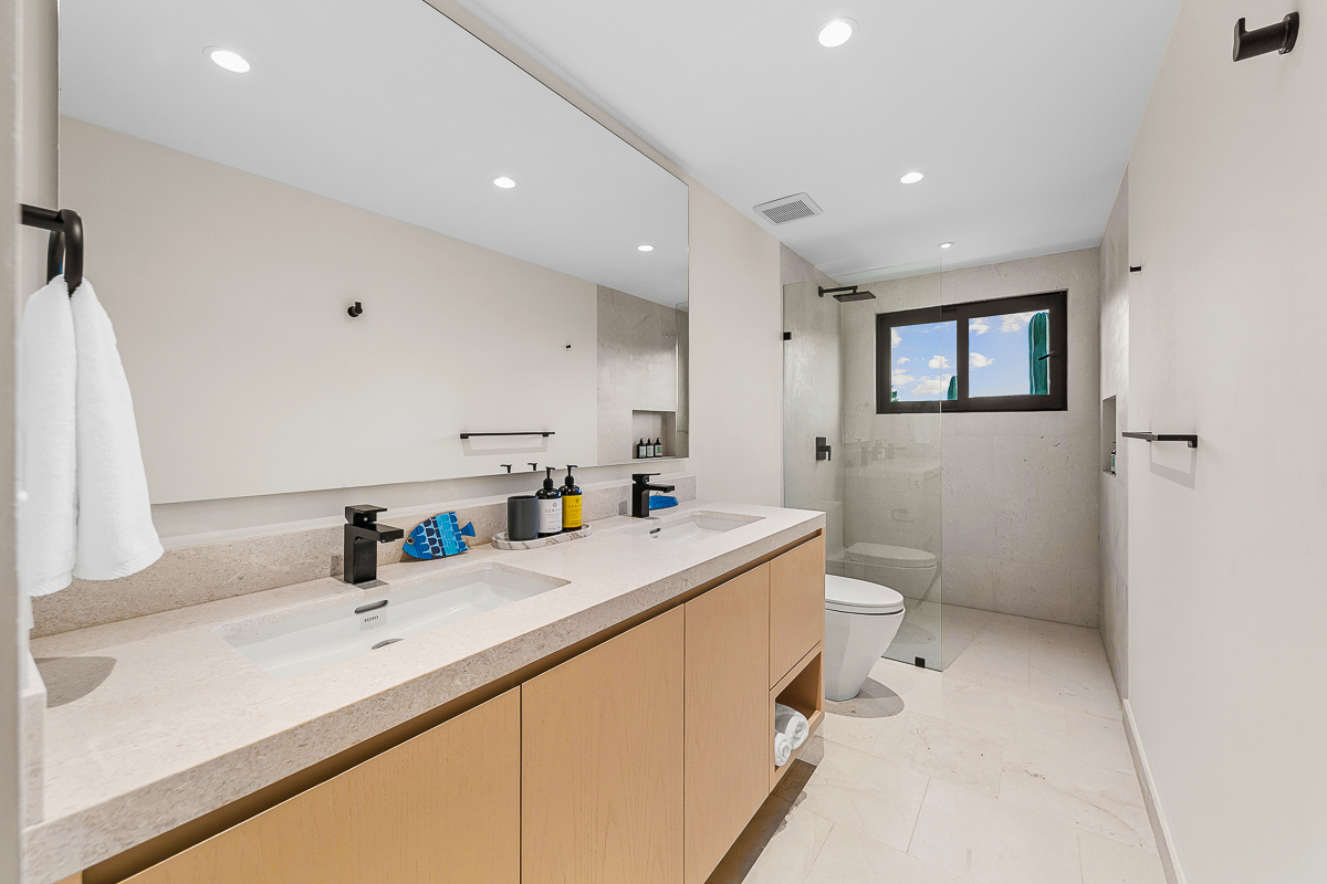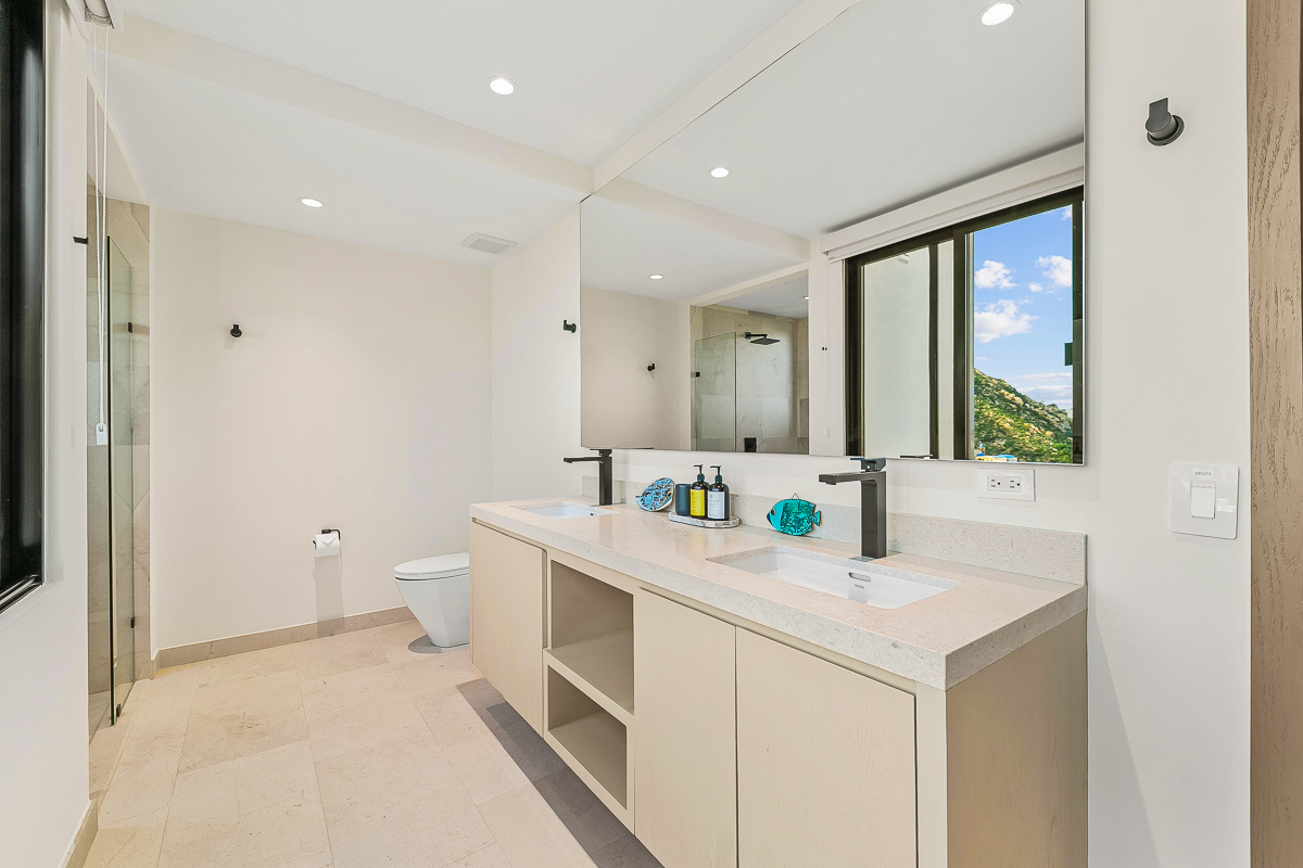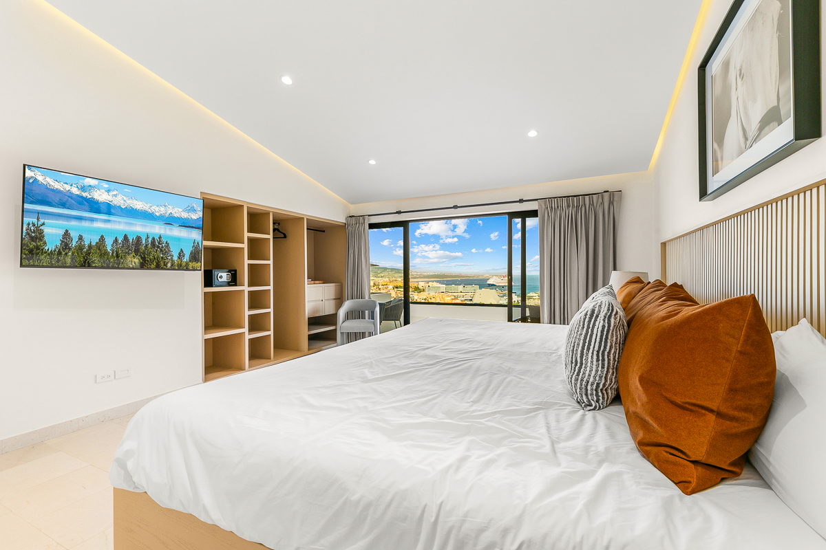 Alaska King bed, full bathroom with his and hers sinks, huge balcony, large shower and TV.